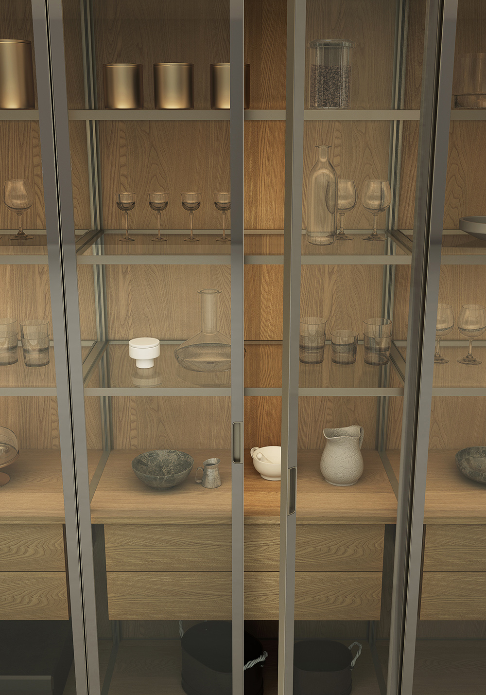 FRAME SYSTEM|MULTIFUNCTION STORAGE CABINETS |AIRE GLASS CABINET