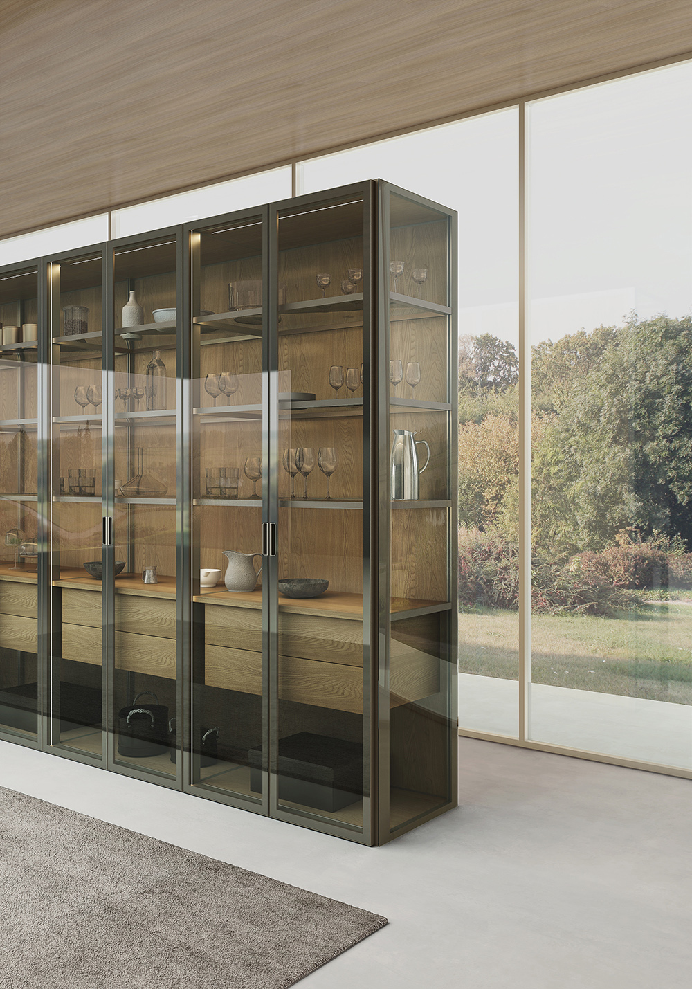 FRAME SYSTEM|MULTIFUNCTION STORAGE CABINETS |AIRE GLASS CABINET